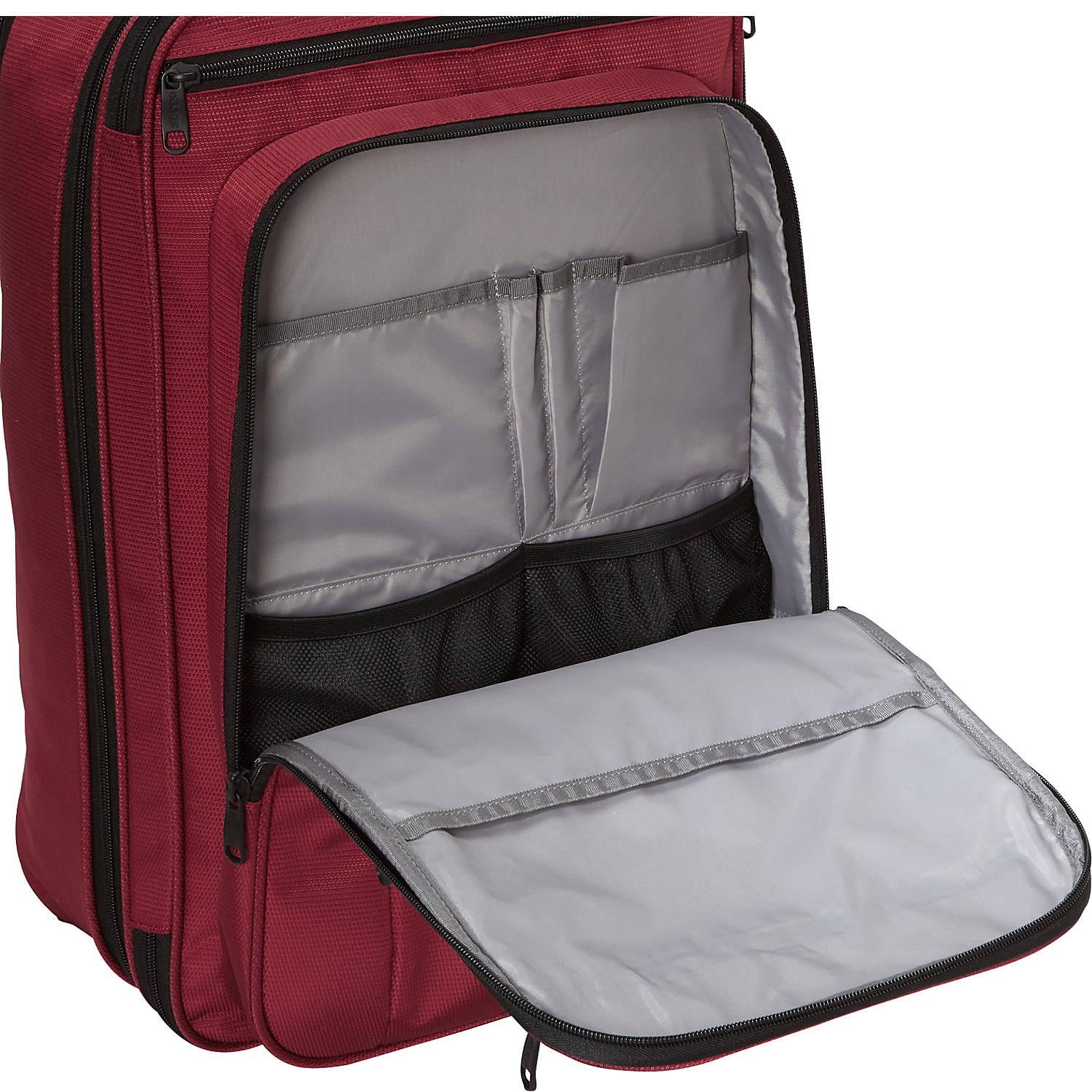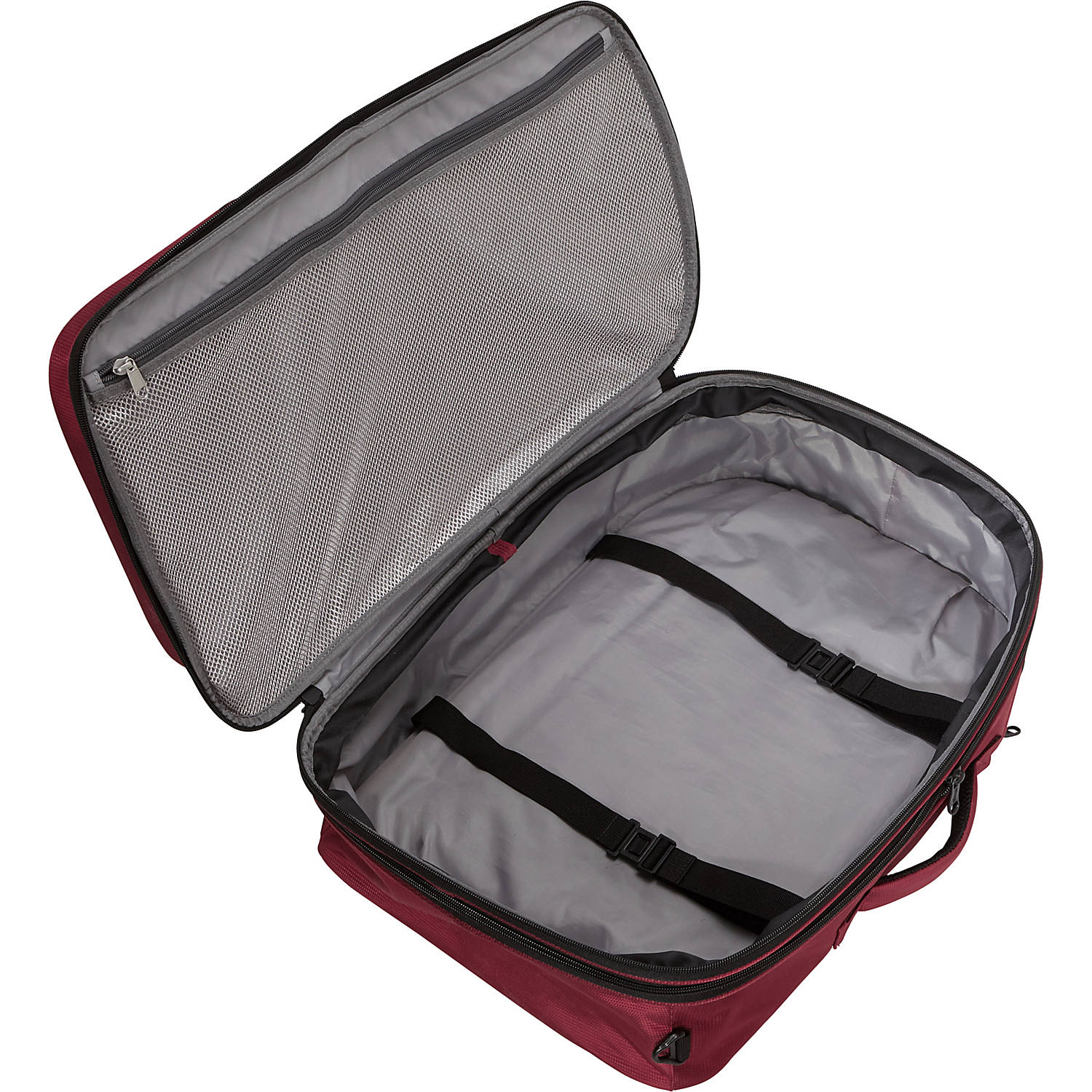 *One main double zipper compartment